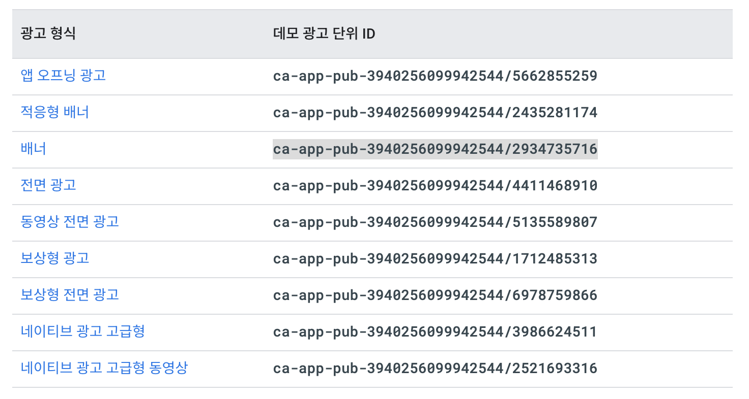 참고사이트: https://developers.google.com/admob/ios/test-ads?hl=ko