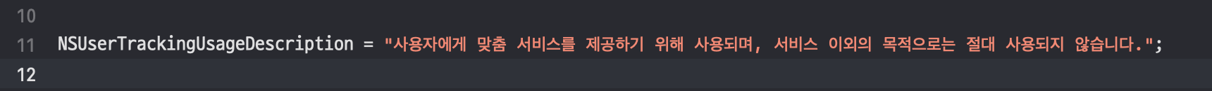 2. InfoPlist.strings에 기본 언어를 제외한 언어에 NSUserTrackingUsageDescription 에 대한 문구를 작성한다.